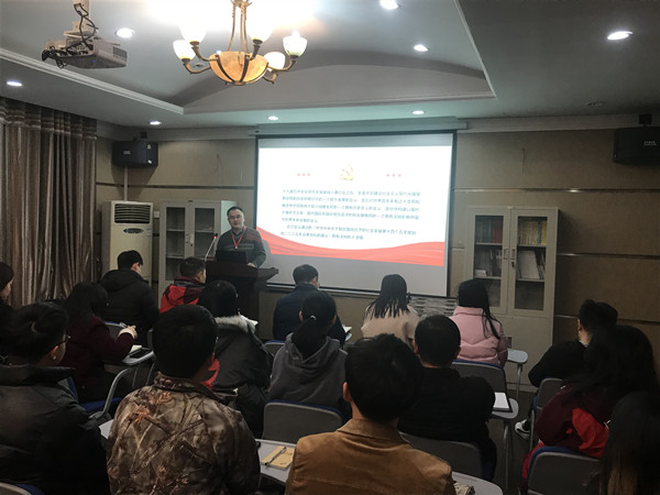 11月27日下午,学院党总支理论学习中心组(扩大)在致远楼203会议室举行2020年第10次集体学习,深入学习党的十九届五中全会精神。党总支书记彭金波主持会议并讲话。院长邓天文上党课《学习第十九届中央委员会第五次全体会议内容与精神》。学院全体师生党员参加会议。
