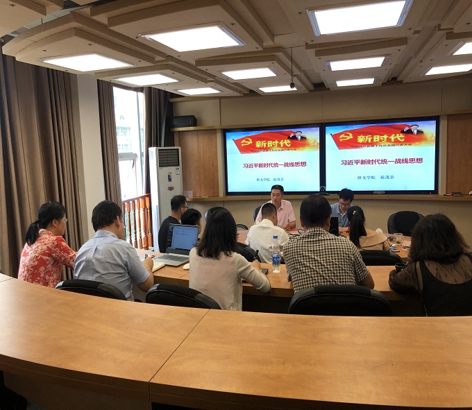 首先,学院党总支组织与统战委员、副院长侯茂章同志给全体党员上了题为“习近平新时代统一战线思想”的党课。侯茂章在回顾我党统一战线发展历史的基础上,从指导思想、宏伟目标、战略地位、主要特征、工作方针和工作的根本方法等方面,系统地阐述了习近平新时代统一战线理论,并提出认真做好学院统战工作,欢迎党外人士为学院发展献计献策。