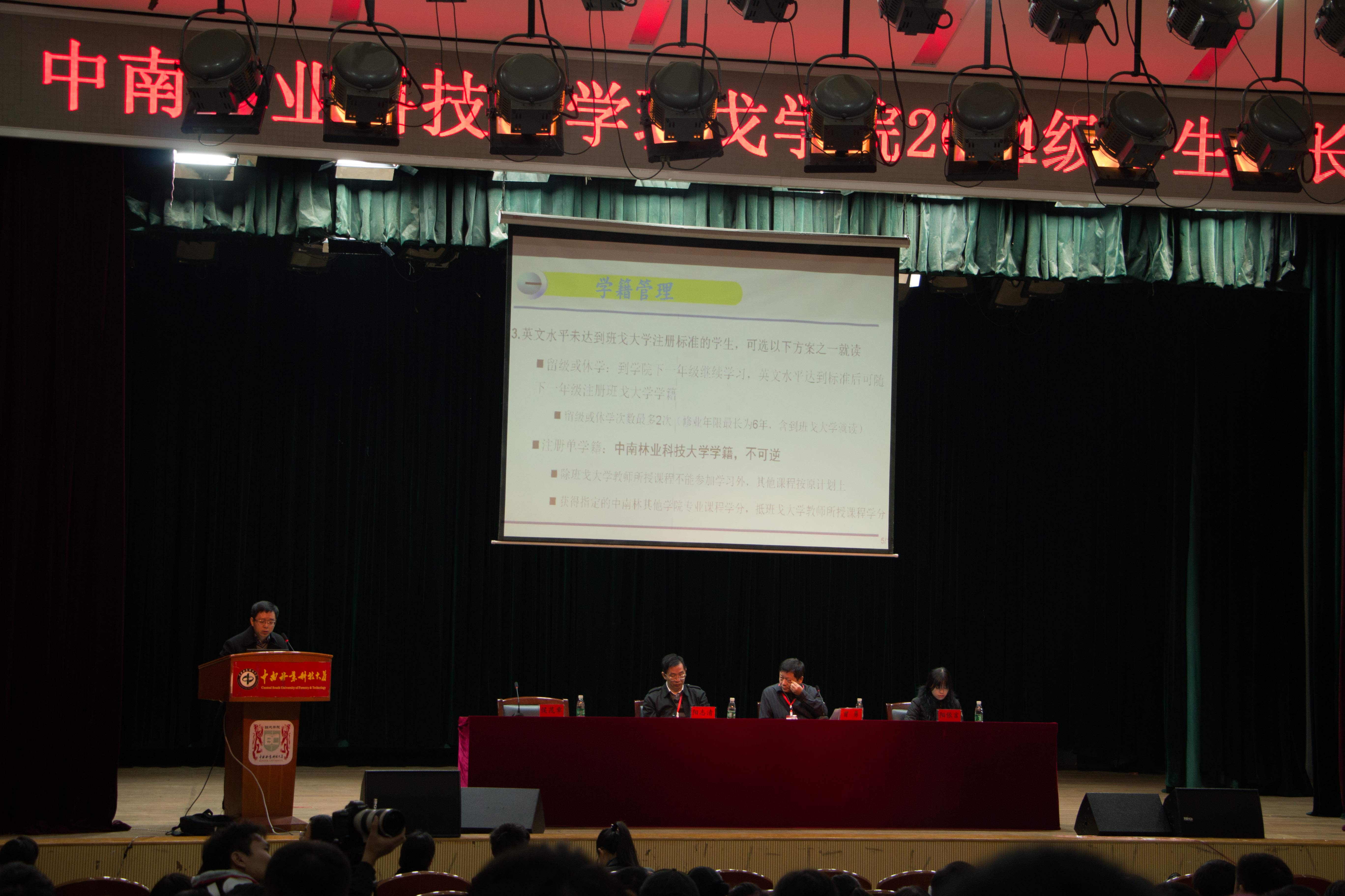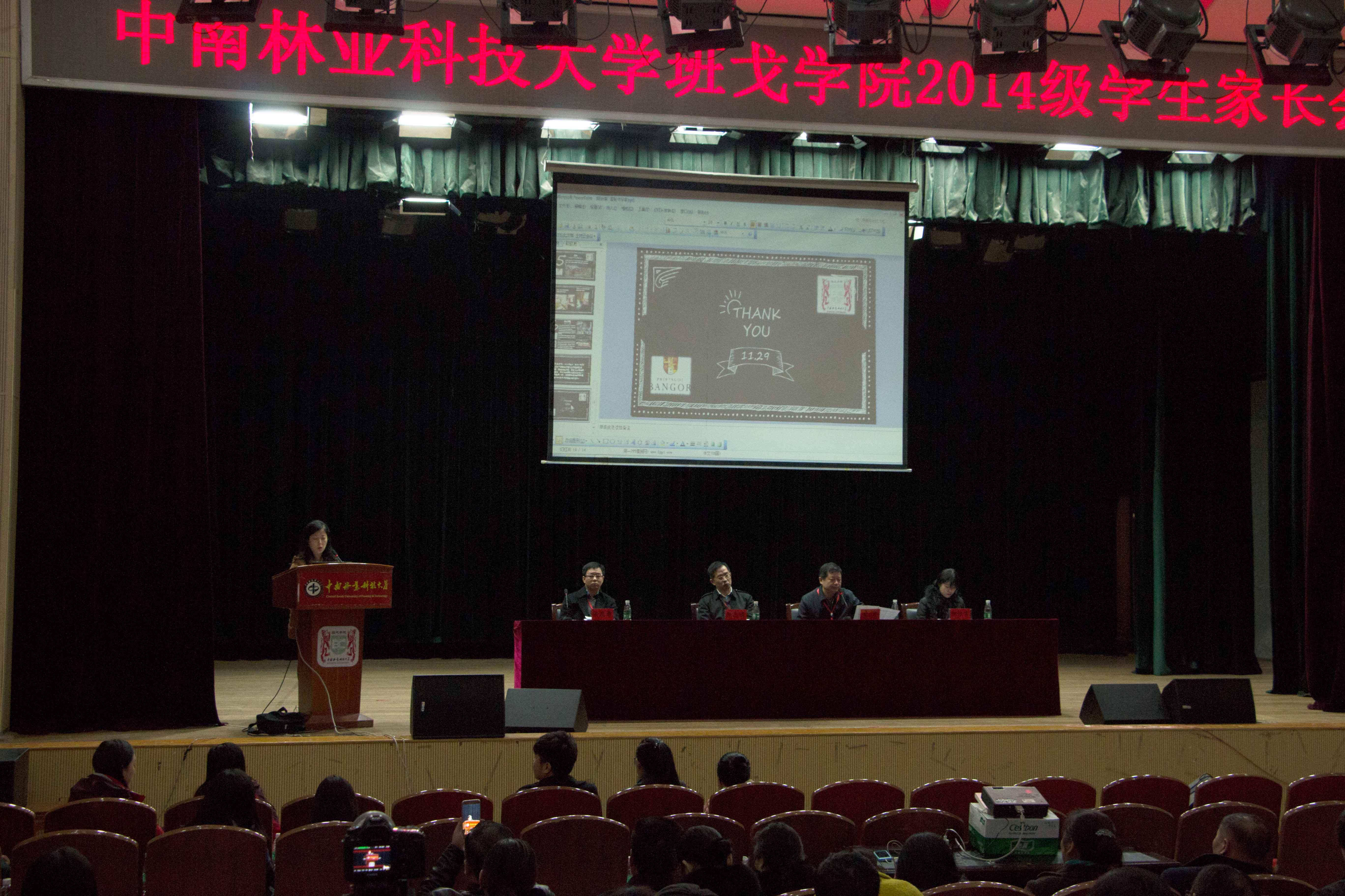 大会第二项,侯茂章副院长针对我院的学籍管理,提出了《中南林业科技大学班戈学生学籍管理方法》,向家长们详细解释了两所学校对学生能力的要求及未达标准的解决措 施。另一方面,针对大二年级英文水平提升,他提出了增设英语辅导课的详细方案。随后,为使家长同学们对留学生活放心,英方质量监督官阳依言老师对学生出国 事项进行了详细阐释说明。
