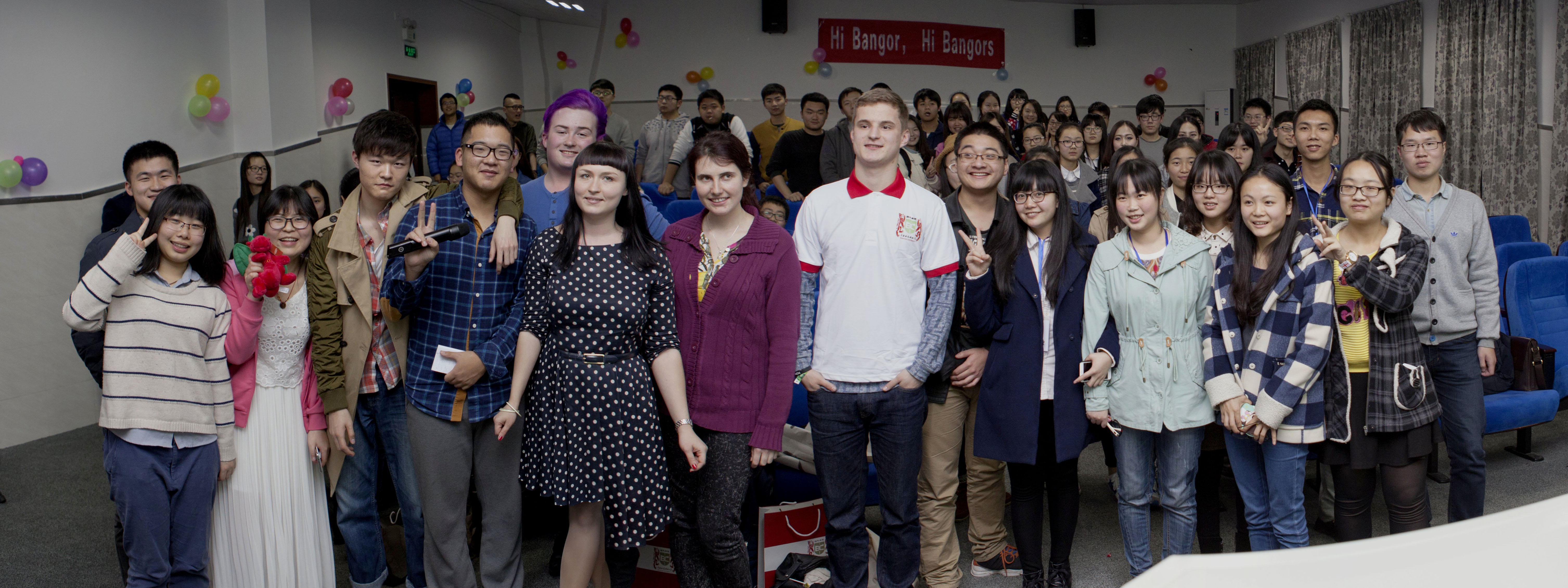 班戈大学文化挑战赛获胜团队(Katerina,Julian,Alexandre,Jake)共四人于2015年3月27日到达中南林业科技大学班戈学院。当日下午,他们在班戈学院代表的陪同下随堂听课、参观校园、并参与视频会议。当晚,该团队参与了由班戈学院方举办的中英师生交流会。