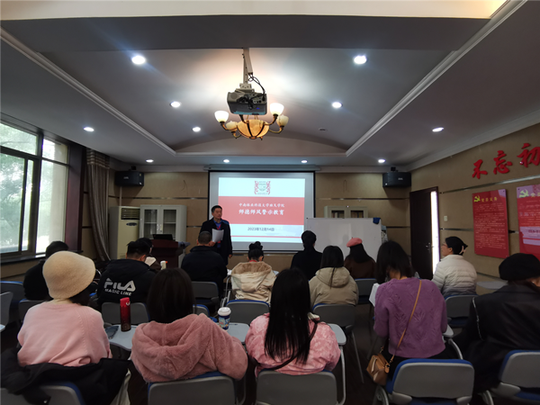 为进一步加强和推进新时代师德师风建设,12月14日下午,学院在致远楼203会议室召开师德师风警示教育大会。会议由学院党总支书记彭金波主持,全体中国籍教职工参加。