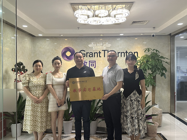 2023年7月20日下午,我院在致同会计师事务所(特殊普通合伙)长沙分所隆重举行教学实习基地授牌仪式。院长邓天文代表学院为实习基地授牌,院长助理童晶、会计系主任王尧尧和致同会计师事务所党支部书记、副所长袁万凯等人出席授牌仪式,并就实习基地建设及校企深度合作进行了会谈。