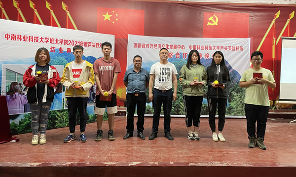 在5月26日晚举行的实习总结大会上,同学们与林场指导教师欢聚一堂,共同展示实习成果,表现优秀的实习生得到了学院和林场的表彰。院长邓天文一行参加了总结大会,并为获奖学生颁发获奖证书。