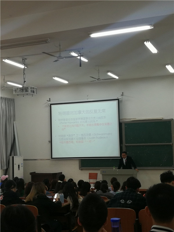 Song博士首先从自身科研方向出发,结合在加拿大前总理Stephen Harper智囊机构任职期间的政策研究经历,分别从当今大国自由贸易协定与中国古代春秋战国期间合纵连横相似性、现代商业连锁机制与中国古代分封体制联系、以及现代经济学收入分配公平理论与论语收入均等论述关系等三个方面进行了详尽的分析,并对近期的中美贸易争端作了独到的解读和预测。此外,Song博士还基于自身在加拿大Beedie商学院的任职经历,为我院金融会计专业学生介绍了加拿大高校金融会计专业研究生项目的录取过程及具体要求。