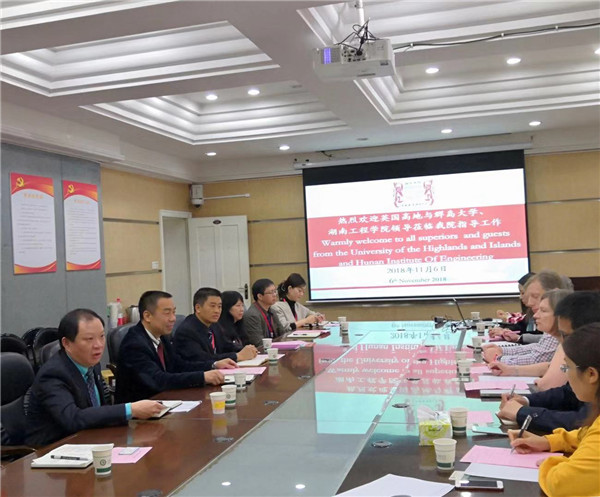 2018年11月6日上午,英国高地与岛屿大学副校长斯图亚特•吉布(Stuart Gibb)、湖南工程学院国际教育学院院长邓奕一行七人来我校调研中外合作办学相关事宜。副校长严曙光接见了来宾,国际合作交流处处长范群、副处长李应洪及班戈学院班子成员参加了会见。