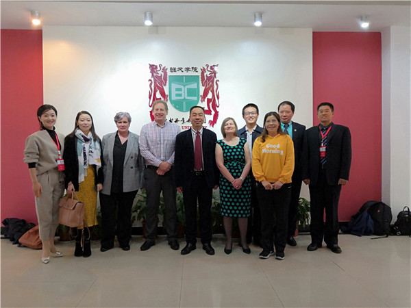 严曙光对斯图亚特•吉布(Stuart Gibb)一行的到来表示热烈欢迎,并简要介绍了我校基本情况。双方就湖南省中外合作办学机构——班戈学院的办学定位、发展现状、招生、教师招聘、学生出国、就业等方面进行了深入的交流。
