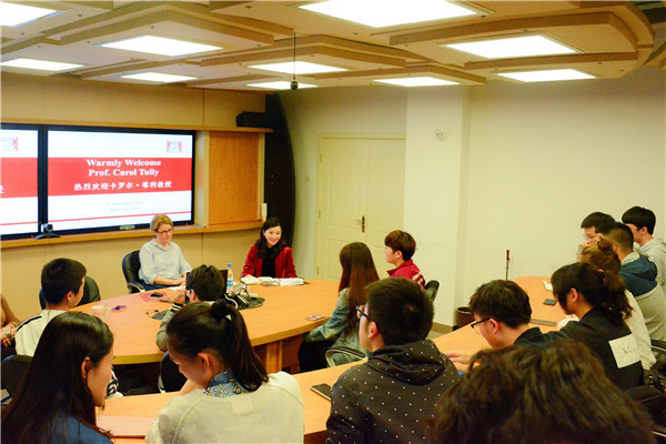 11月5日,在致远楼四楼视频会议室举行了卡罗尔•塔莉见面交流会。学生代表们就大学生活、专业学习、国外留学等方面与卡罗尔•塔莉进行了深入的交流。