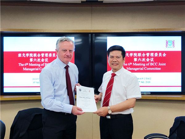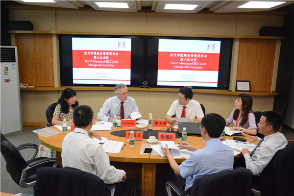 7月8日,班戈学院中英联合管理委员会第六次会议在我院视频会议室召开,中英联合管理委员会主席主持会议。联合管理委员会副主席约翰·休斯校长,委员朱道弘副校长、严曙光副校长、王志文院长、凡红副院长共六人参加了会议。会上,主席通报了2017年5月31日联合管理委员会会议提案执行情况,王志文汇报了班戈学院2017年1月至2018年6月工作情况。并就生源省份增加、课程调整、教学模式改变以及联合管理委员会委员增补等议题进行了研究讨论,取得了诸多共识。