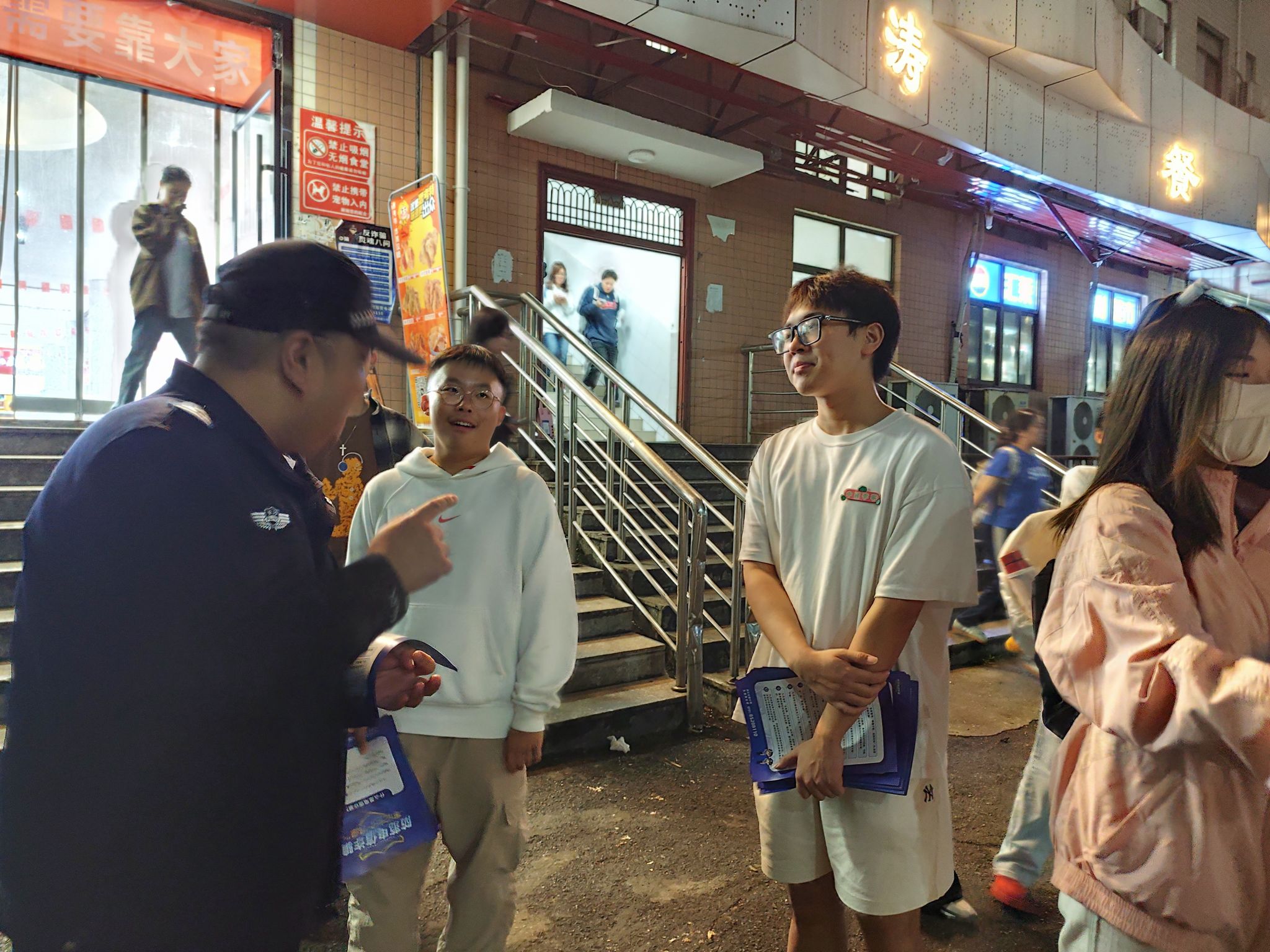 本次活动采用“定点+上门+答疑”的形式,力求宣传全覆盖。活动期间,在本院学生入住的桃园14栋宿舍门口及林涛餐厅门口设立了宣传点。文源街道派出所孔警官、学院团委书记何依绵与学生会实践部成员分工协作,向过往学生发放反诈宣传单,普及常见诈骗手法。